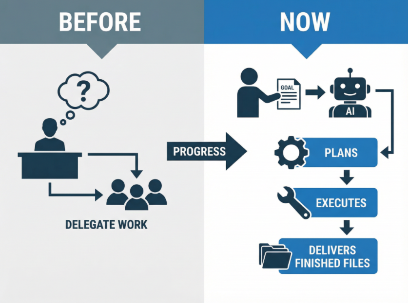 give AI a goal → it plans → it executes → it delivers finished files.
